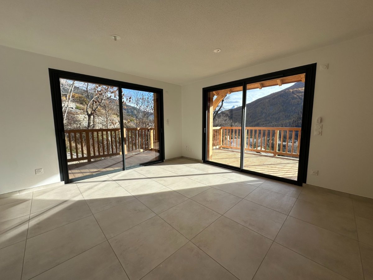 Il se compose d'un séjour lumineux ouvrant sur deux terrasses : l'une exposée Sud-Est, l'autre plein Sud, profitant d'une VUE EXCEPTIONNELLE SUR LES PISTES DE SKI DE SERRE-CHEVALIER !